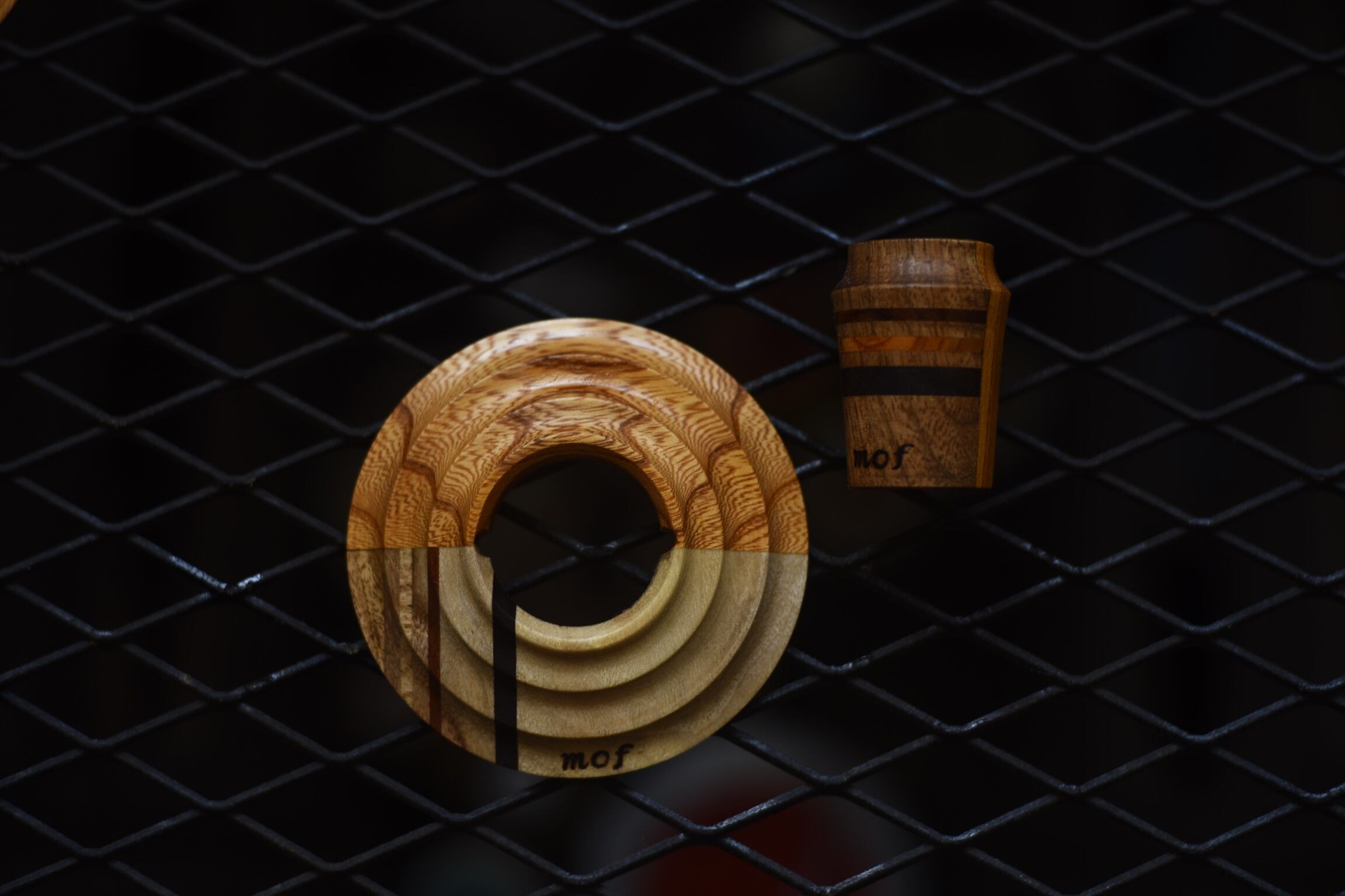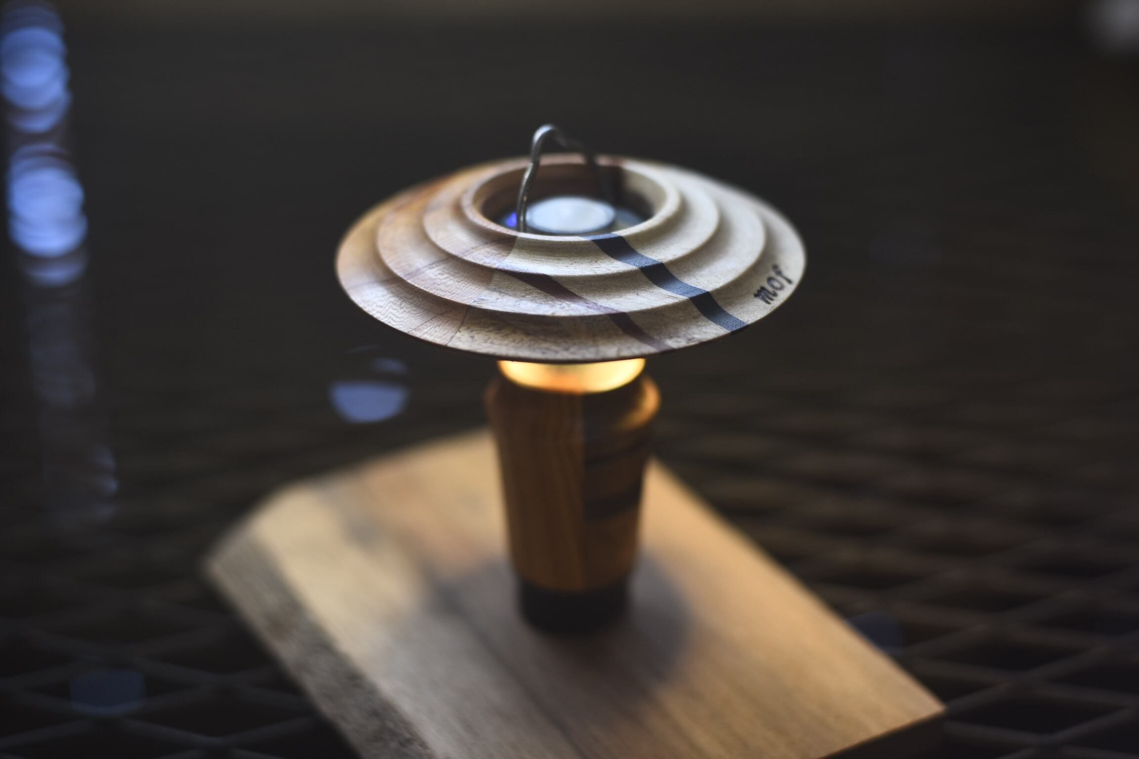 ケヤキをベースにウォールナット、チェスナット、ブビンガを使いアクセントをつけたシェード、カバーになります。